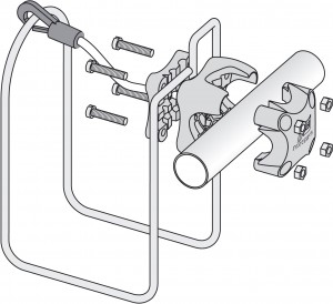 Suporte p/ bóia ferradura composto por: 1 adaptador plástico para tubo de 18,5 a 25,5 mm de diâmetro; 1 suporte em aço inox para bóia ferradura com no máximo 10,5 cm de espessura; 1 elástico com mosquetão para segurar a bóia.